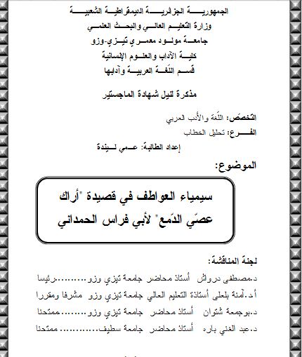 سيمياء العواطف في قصيدة أراك عصي الدمع لأبي فراس الحمدانيpdf