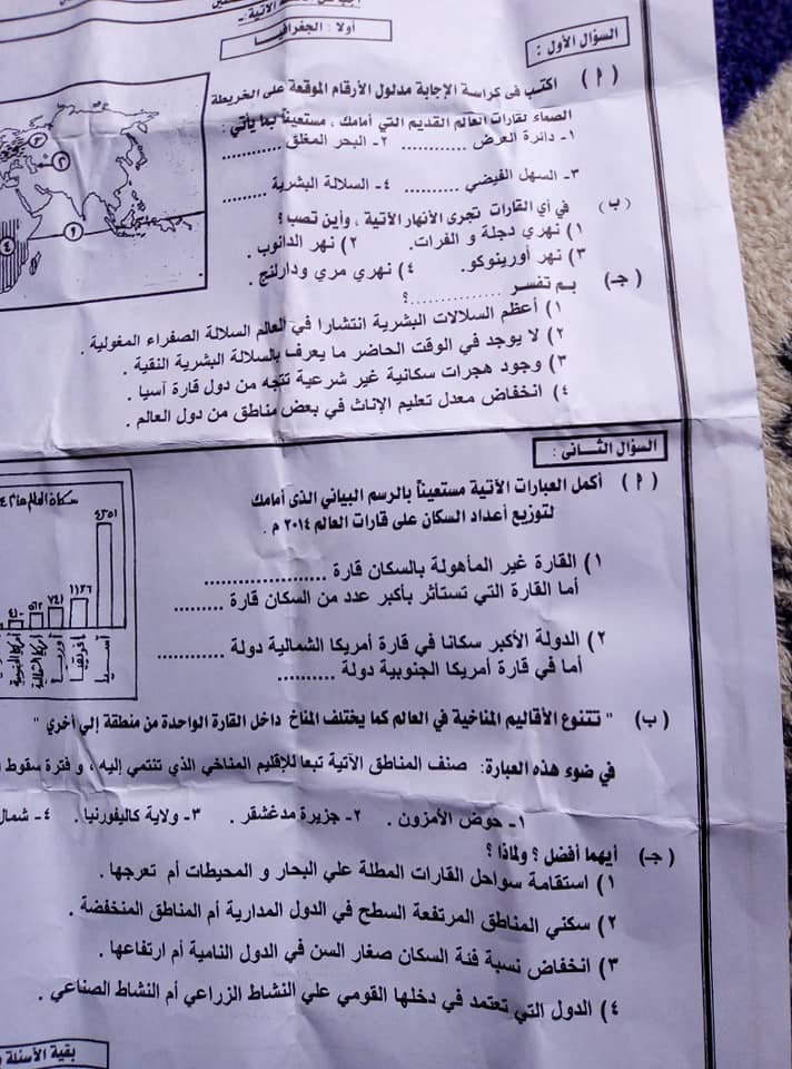 امتحان دراسات اجتماعية للصف الثالث الاعدادى ترم اول 2020 محافظة اسيوط