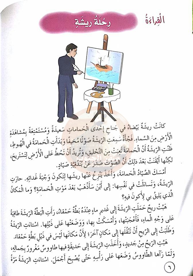 بالصور استخراجات من درس رحلة ريشة لمادة اللغة العرية الصف الرابع الفصل الثاني منتديات صقر الجنوب